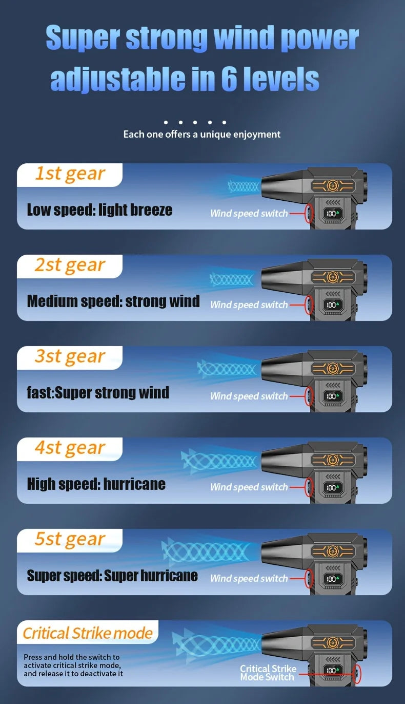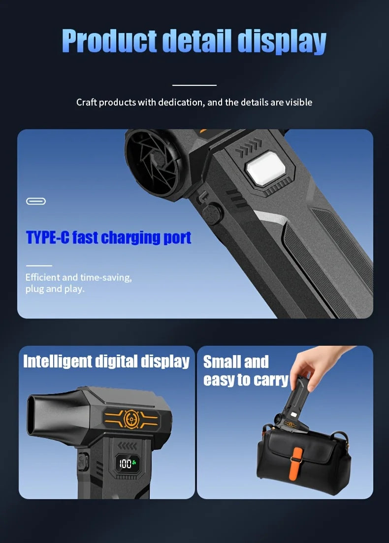 ✔ Ultra-Strong Turbo Wind – Generates high-pressure airflow capable of blasting away dust, debris, and moisture with ease.